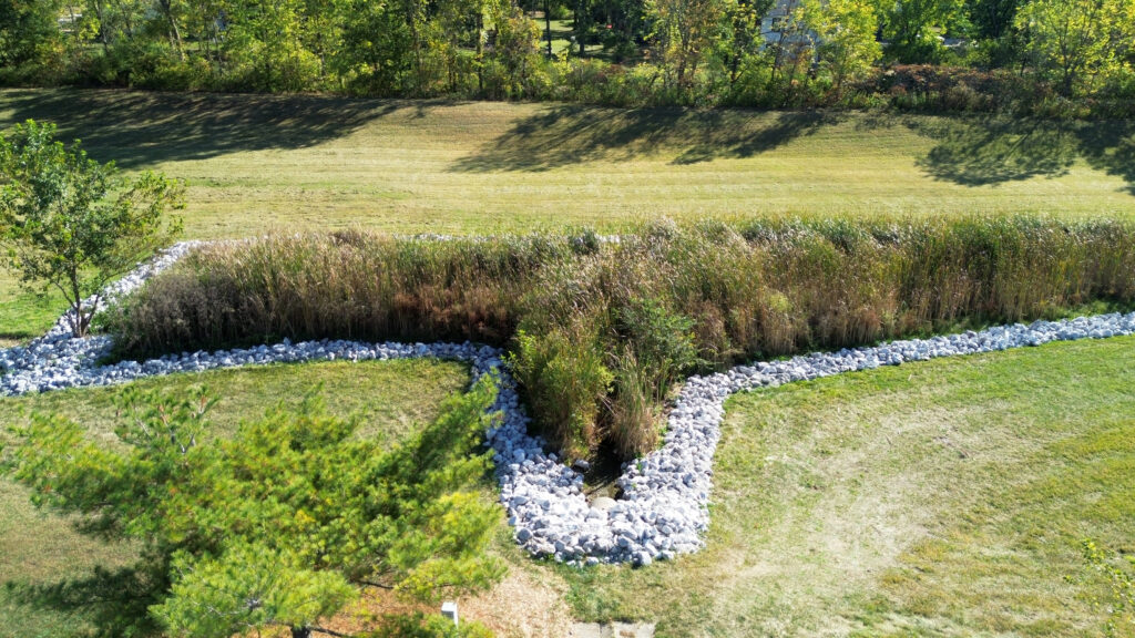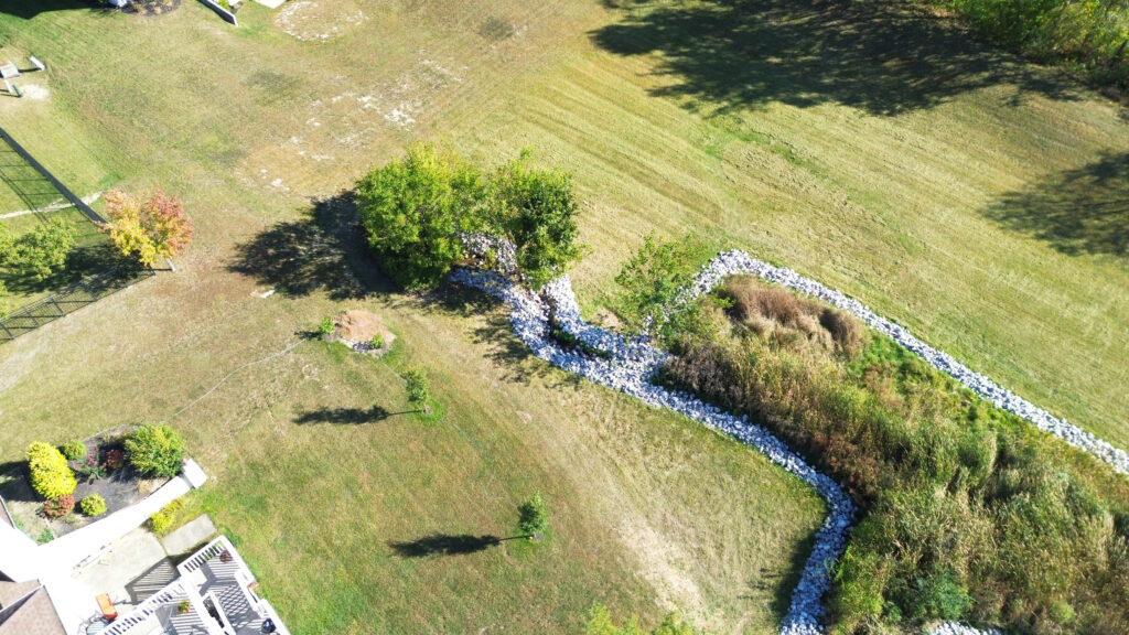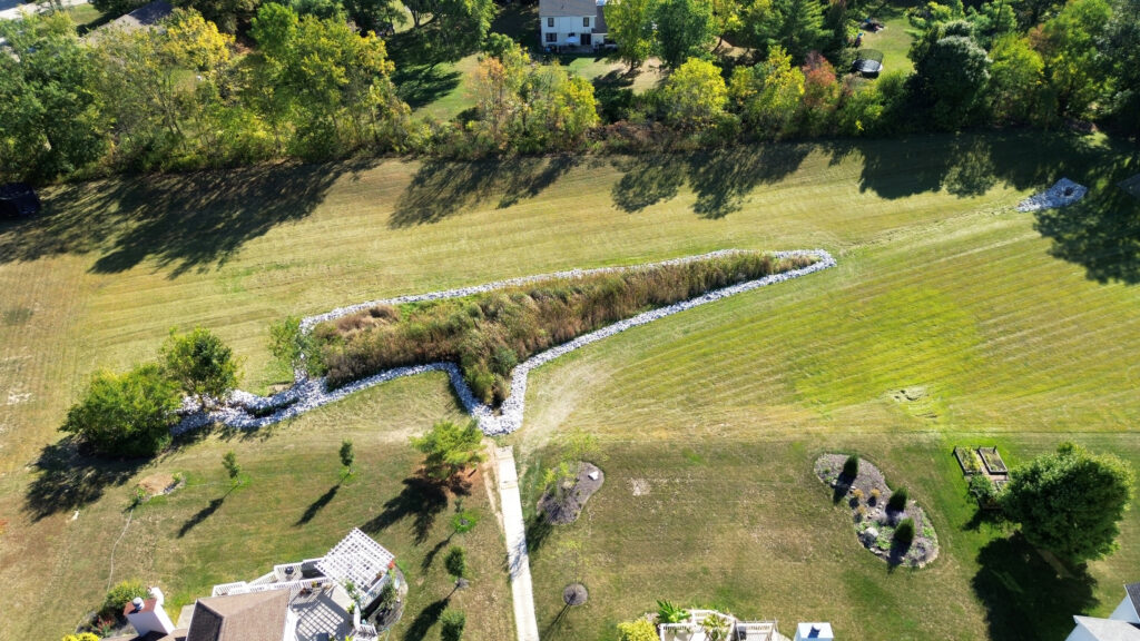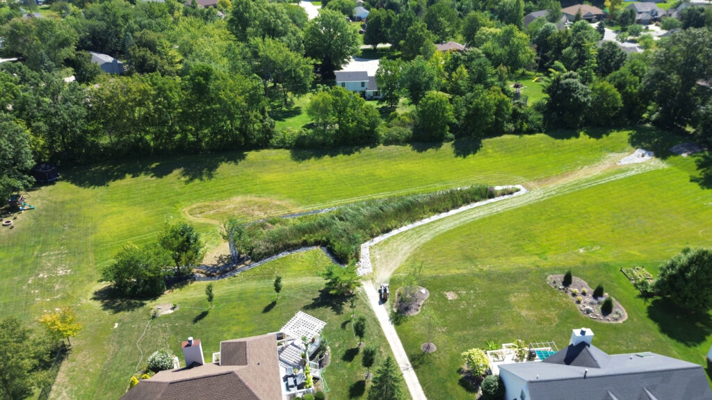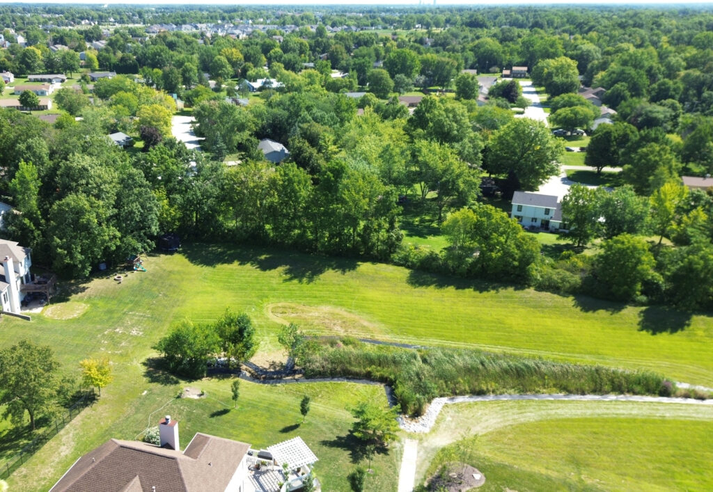 The photos in this gallery are from prior to, during and after the completion of the detention basin project. The photos are shown in chronological order and the 2.15 acre area was completed in August and early September of 2025.