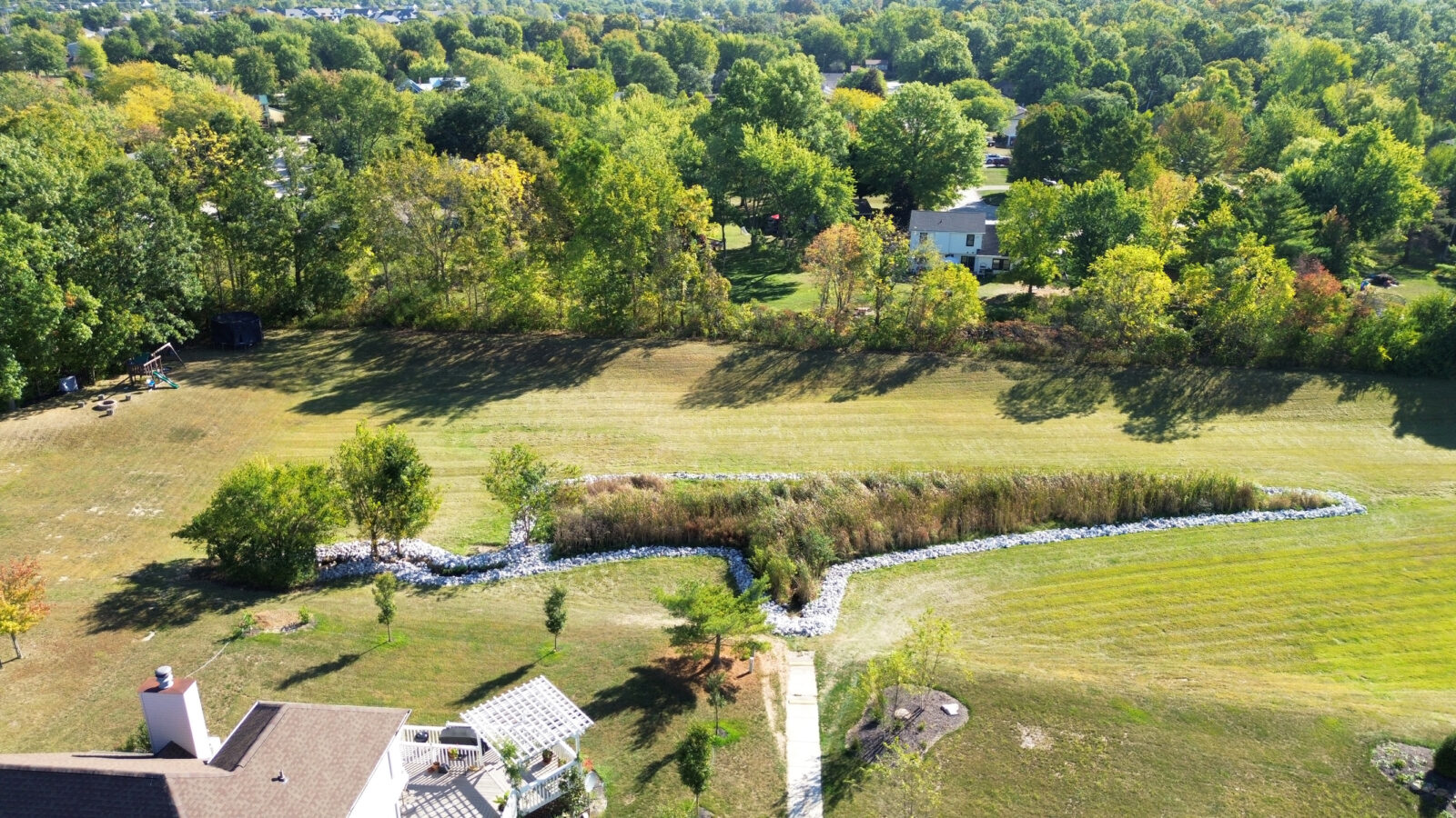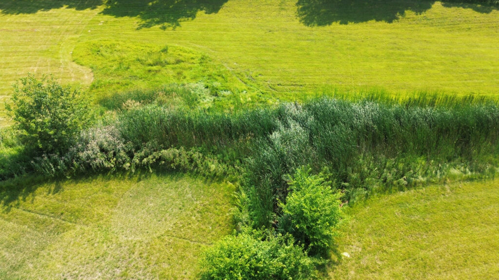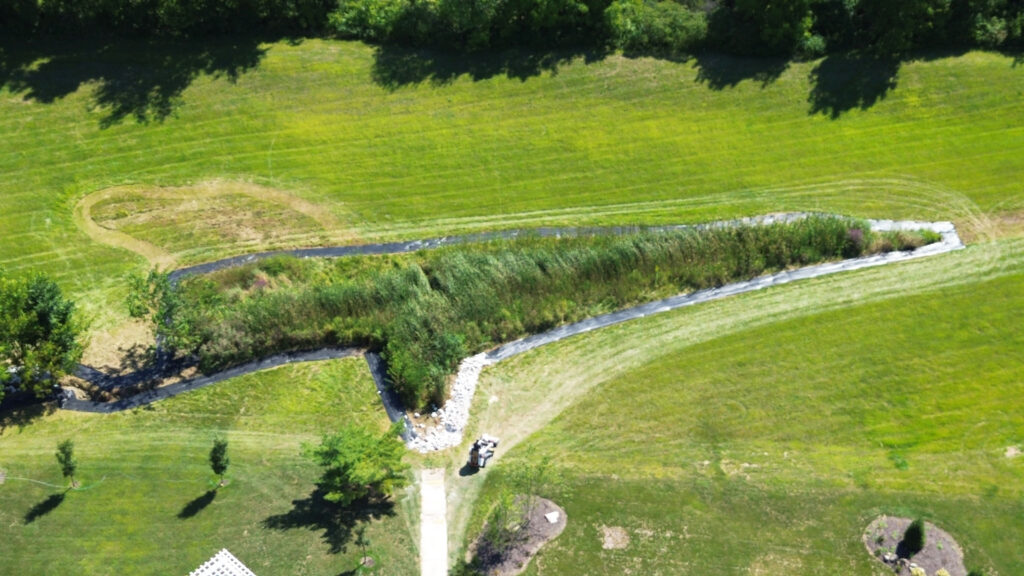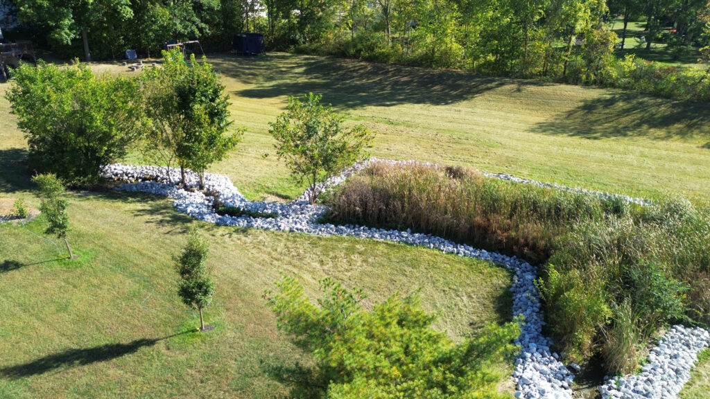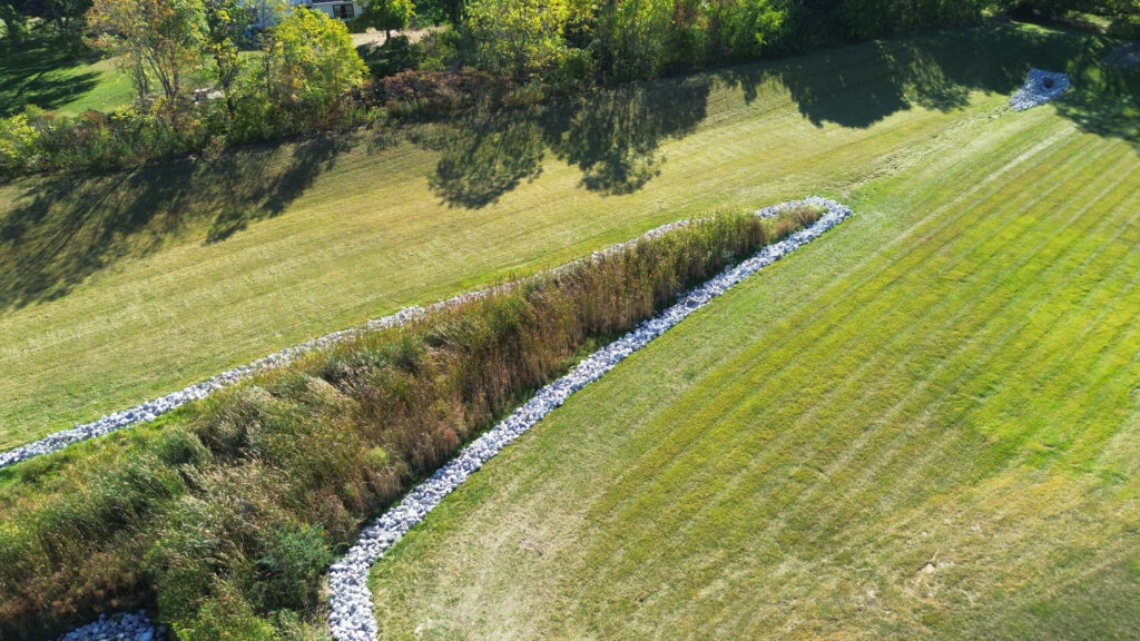 The photos in this gallery are from prior to, during and after the completion of the detention basin project. The photos are shown in chronological order and the 2.15 acre area was completed in August and early September of 2025.